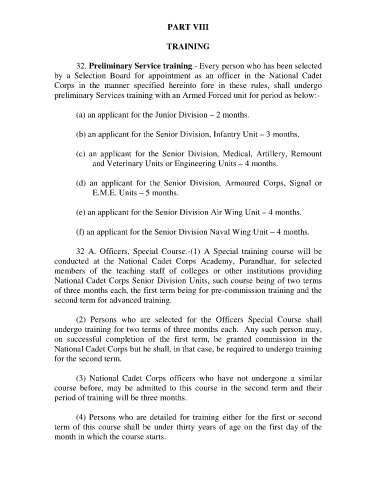 National Cadet Corps but he shall, in that case, be required to undergo training