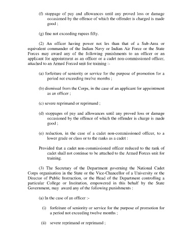 (f) stoppage of pay and allowances until any proved loss or damage