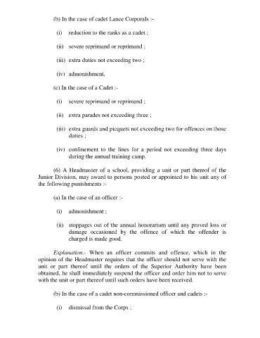 (b) In the case of a cadet non-commissioned officer and cadets :-