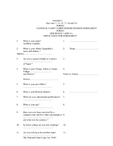 NATIONAL CADET CORPS SENIOR DIVISION ENROLMENT