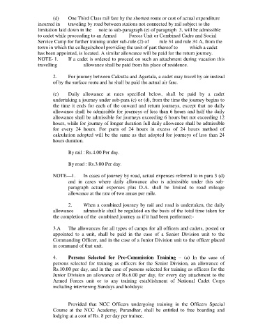 2. For journey between Calcutta and Agartala, a cadet may travel by air instead