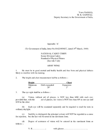 (To Government of India, letter No.0162/49/NCC, dated 19 March, 1949)