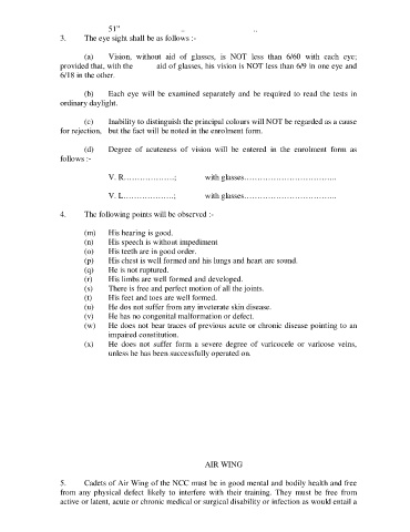 5. Cadets of Air Wing of the NCC must be in good mental and bodily health and free
