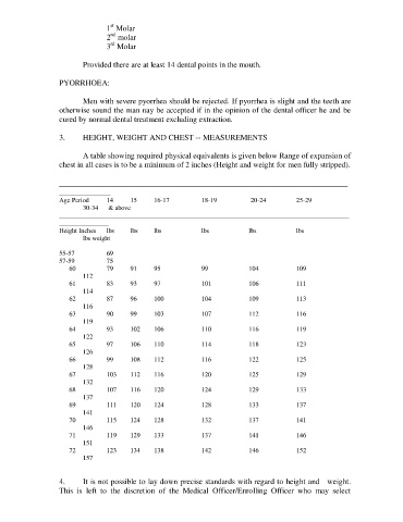 chest in all cases is to be a minimum of 2 inches (Height and weight for men fully stripped).