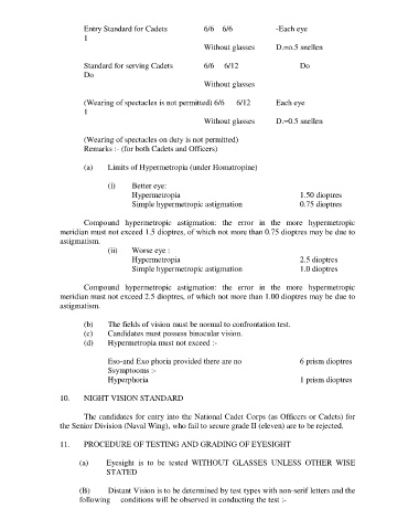 Entry Standard for Cadets 6/6 6/6 -Each eye