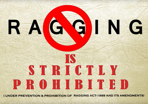 महाविद्यालयीन परिसरात कोणत्याही व्यक्तीने विद्यार्थ्यांना कोणत्याही प्रकारे त्रास देण्याच्या दृष्टीने खालील पैकी कोणतेही वर्तन केल्यास ती व्यक्ती अॅन्टी रेंगींग कायद्याने फौजदारी शिक्षेस पात्र राहील. १) शेरेबाजी, २) गाणे म्हणणे, ३) आवाज देणे, ४) चिट्ठी फेकणे, ५) त्रास देणे, ६) नक्कल करणे, ७) मारहाणकरणे, ८) चिडविणे इ. व्यक्तीने चरील कुठलेही वर्तन केल्यास खालील अॅन्टी रॅगींग समितीच्या सदस्यांशी त्वरीत संपर्क साधावा.
