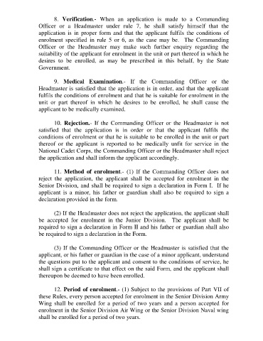 enrolment specified in rule 5 or 6, as the case may be. The Commanding