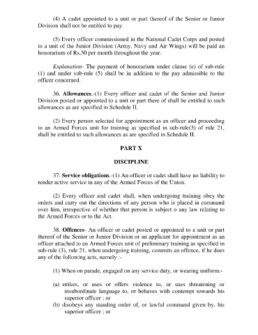 36. Allowances.-(1) Every officer and cadet of the Senior and Junior