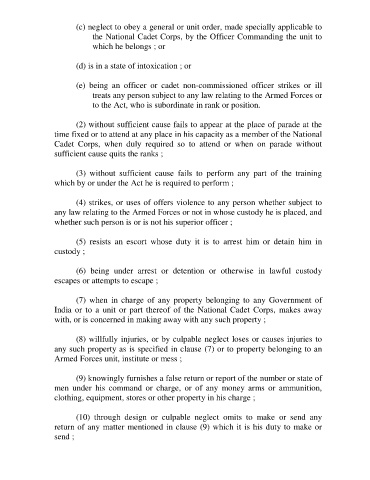 Cadet Corps, when duly required so to attend or when on parade without