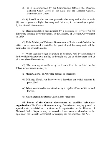 officer so recommended is suitable, the grant of such honorary rank will be