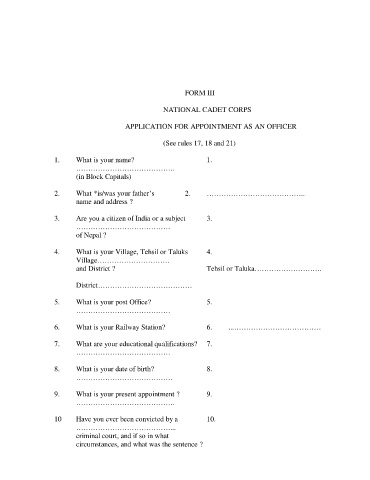 APPLICATION FOR APPOINTMENT AS AN OFFICER