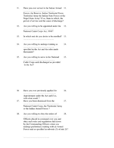 11. Have you ever served in the Indian Armed 11.
