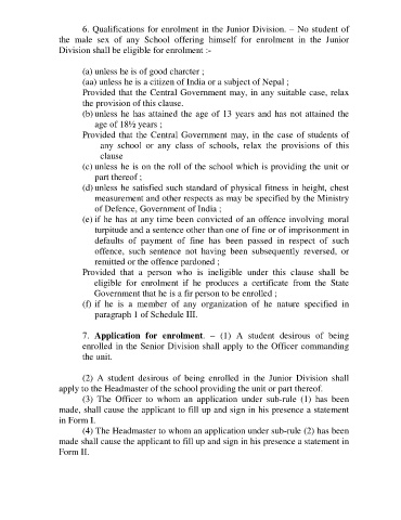6. Qualifications for enrolment in the Junior Division. – No student of